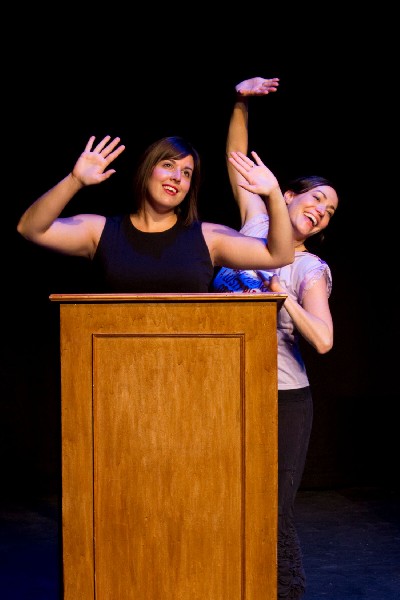 Vanessa Severo does a star turn as Angela, mixing fragility and strength in a physically comic take. Choosing to punctuate her phrases with a balletic pose from Julie Kent or an invented yoga dip, you can’t take your eyes off her. Severo turns on a dime to give us many laugh aloud moments which build to the tragic and provocative conclusion. Her over-the-topness may have caused her twin to abandon her, and that quality is clear as Severo spins and twirls through heaven.