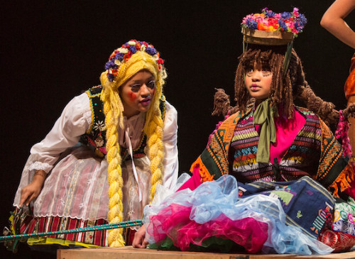 Finally, the most touching and dramatic scene is the "Feria del Mole" festival where six young women in festival dress demonstrate how they each make their own special version of the famous Mexican sauce. To create this scene, ensemble members interviewed and learned the secret mole recipes and cultural traditions from moleras at a women's collective at Universidad Popular in Little Village.