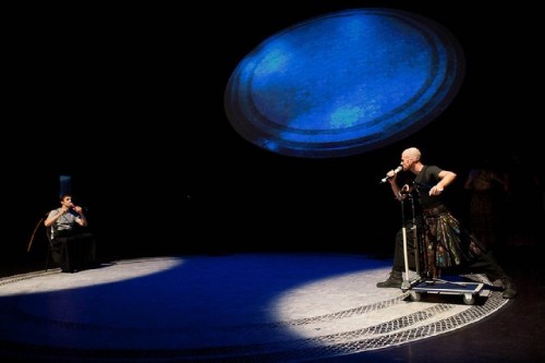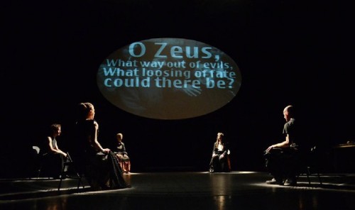 So much so that a group of seniors exiting the theatre were conducting an informal audience survey. An older gentleman was quite put off. He had come to Pillow expecting tutus. In this production that included spoken text, video projections, microphones, chanting and song, as well as Heracles bashing away at a drum kit, this was hardly Swan Lake.