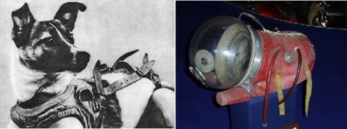 "OK, it's a little George Jetson, a little Laika." Laika, it turns out, was the first mammal to orbit the earth in Sputnik 2 though the canine died within hours after the launch. The US used chimpanzees.