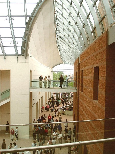 Perhaps, the most striking space in the Peabody is the courtyard piazza. It is light filled from its curvilinear glass roof. Paved in small light pink granite pavers, the flooring suggests a nostalgic cobblestone street. Apparently, in the muiddle of the design process, Safdie modified his plan to accommodate the two-story late-Qing Dynasty Chinese merchant's house. It presently is now adjacent to the interior courtyard. All in all, Safdie did a rather brilliant job bringing rather diverse pieces together to form a coherent whole of a museum.