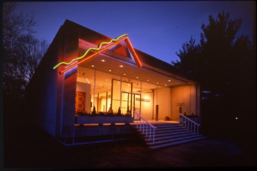 Brandeis University may be the most aesthetically displeasing and architecturally incoherent campus anywhere. There, the only flower in the weeds has been the Rose Art Museum. This has been more for what it has shown then where it has shown it. Over the years, the trustees must have confused the notion of taste with waste. Too bad. The Rose Art Museum in Waltham, Massachusetts was founded in 1961 and is housed in an International Style building designed by Max Abramovitz of Harrison Abramovitz. The original Rose building is a classically bland white box with a ubiquitous atrium on the main level and a reflecting pool on the lower level. In 1973 the original building was expanded with a utilitarian, brick-construction, support building. With its expanding program and art collection, The Rose inaugurated the Lois Foster Wing in 2001, designed by Graham Gund Architects, to provide additional gallery space to present regular displays of works in the Brandeis University art collections and to expand the contemporary art exhibition program.