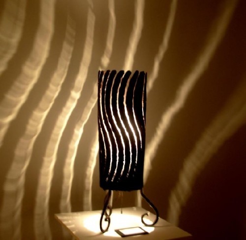The work of Brian Jewett has evolved from the notion of basket making. His specific interest has been in weaving them from recycled industrial elements. This evolved into making the baskets into vessels as hanging lighting fixtures. He also creates table and standing lamps such as "Wave Lamp" in which patterns are projected onto the wall. In addition to their practical uses these are also Green works that preserve and enhance the environment. It is important to the artist that the work has a positive social and political impact.