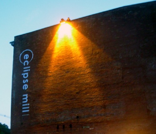 One of the greatest challenges for a curator is to take an original idea and create a context for the work. Here all of the elements mesh superbly. Upon entering the gallery, or even approaching the Mill at night along Route 2, it is immediately and powerfully obvious what the exhibition is about. The building itself has been morphed into a sculpture by the sparing use of industrial lights which Powell positioned over the cornice and directed down in splayed beams from either end of the vast building.