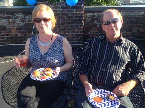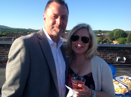 Supporters and farmers market vendors enjoyed the roof top of the classic Pittsfield building. The sun was out in full glory, as revelers celebrated.
