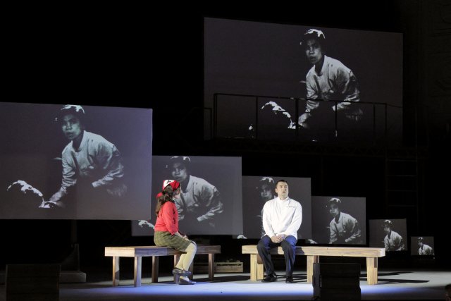 Benavides’s music is blessedly tonal and fitting to the situation – often ominous, and sometimes consoling. A full sound is developed by Conductor Mary Chun’s small orchestra, but the highlights tend to occur in various solo segments, a particularly appealing one being a haunting viola solo that accompanies Huerta’s sadness as she pines for her seven children that she seldom sees because of the demands of her job as a union executive.