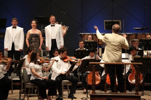The program featured the young players of the Tanglewood Music Center Orchestra. This included the vocal fellows Allison Angelo, soprano, Alex Richardson, Tenor, and Alan Dunbar, bass-baritone. They were featured in the complete 1920 work "Pulcinella." The suite was commissioned by Daghilev. It was based on fragments by the 18th century composer Giovanni Battista Pergolesi. The sets and costumes were designed by Picasso.