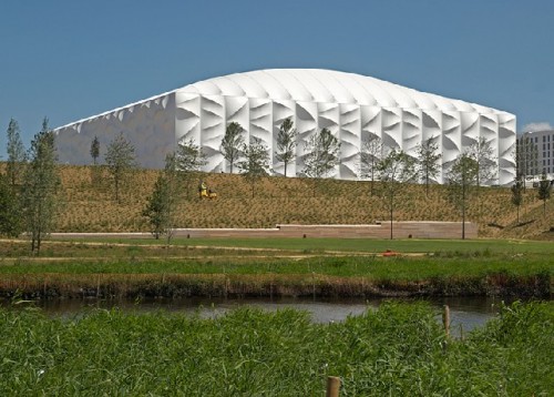 Seating 12,000, it underscores the notion that a temporary structure can also be epic architecture. It is certainly sculptural and iconic. Rio, the next Olympic city in 2016, will probably re-use it at their games. The Basketball Arena was also used to house athletes before the Opening and Closing ceremonies.