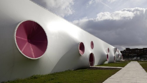 Wendy is fabricated by a simple, inexpensive construction system. The main structure is a scaffold that forms a 70’ x 70’ x 45’ volume allowing the largest surface area possible. Wendy iscertainly architecture as sculpture.