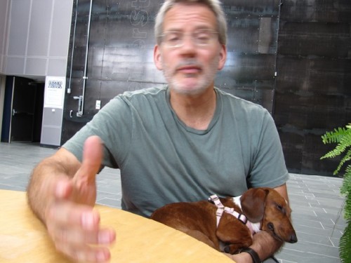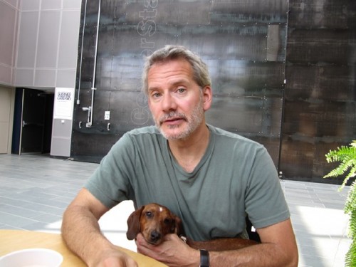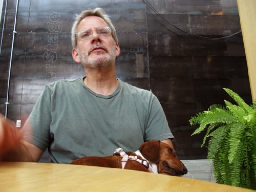 When actors and directors are in rehearsal there is limited access for interviews. Now that Our Town by Thornton Wilder has opened at Williamstown Theatre Festival Campbell Scott had time to meet with me. Promptly at 1 PM he arrived in “my office” a lounge of the 62 Center of Williams College. He was carrying a dachshund Spooky under his arm.