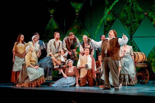 The cast was in general superb As the prosperous farmer Plunkett, bass Jason Budd practically stole the show as he had playing Falstaff in “The Merry Wives” two years ago. His big moment at the start of Act II was in leading a drinking song, a de rigueur set piece in many comic operas, in praise of English beer. Budd’s flexible bass possesses a full range of tonal color, which he used articulately for expressive purposes. His extraordinarily long held note toward the end of his aria was the finest display of vocal prowess of the evening. And Budd doesn’t just sing, he makes you believe what he is singing, because, in the moment, he does. He sings with the natural joy that not all singers are able to muster, even if they produce beautiful sounds.