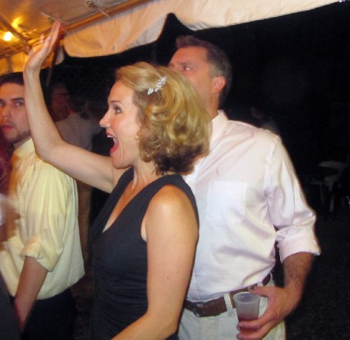 Enter the real contractor Edward Horton played by the adroit Arnie Burton. It is winter, a blizzad actually, and Horton arrives with an overcoat. He takes it off to reveal The Contractor. That evokes a howl from the audience. He is tricked out with contractor gear including a tape measure. In a funny bit he starts to measure everything. But, it turns out, he is an actor. A lonely one who soon is enjoying the party, which never happens, and a few Bombay martinis. Burton is a nice touch in a comedy which by mid point is spinning as much off track as the ever more frazzled hostess.