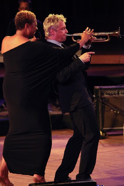 During Childs’s segment Botti laid back roaming the stage and allowing his sidemen to cut loose. Then he faded back in trading rhythmic riffs clustered around a flurry of High C’s. That slipped into a few bars of the jazz standard “Moanin,” but just a flirtation, then out again for jamming improvisation. Botti flashed his bop chops setting to rest any doubts about his jazz bona fides.