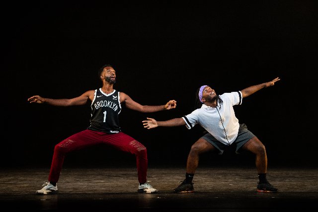 The triumphant and joyous program commenced with a step back to Turf an excerpt from ink (2017). It was a duet performed by Dorse Brown and Mikhail Calliste. We first encounter a young man in athletic gear with sneakers. He wears a tank top emblazoned with “Brooklyn.” He simulates slick moves of an ersatz basketball player. In a charming manner he engages the audience. With thumbs he extended his tank top to emphasize Brooklyn. There was hearty response from ersatz Brooklyn fans in the audience. He is joined by another youth in shorts with a generic white shirt.