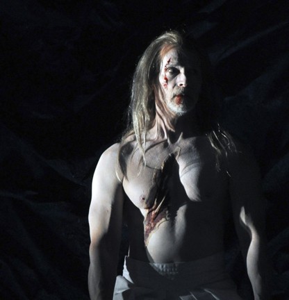 Not to say this production is without merit. There are wonderful moments and superb performances. There was the compelling scene when the witches conjure up shades with prophesies. In general the scenes with the witches were absorbing and suitably morbid. Many in the supporting roles were magnificent. The Banquo of Walter Hudson was masterful. Both in life, as the companion of Macbeth, and as a bloodied apparition. We much applaud the measured and rich Macduff of Tim NcGeever. Ralph Patillo was suitably commanding and regal as Duncan. He returned splendidly in the cameo role of the Doctor called in to treat the illness of Lady Macbeth. Brandy Caldwell evoked much compassion as the protective mother Lady Macduff who is raped and murdered by Macbeth’s thugs.