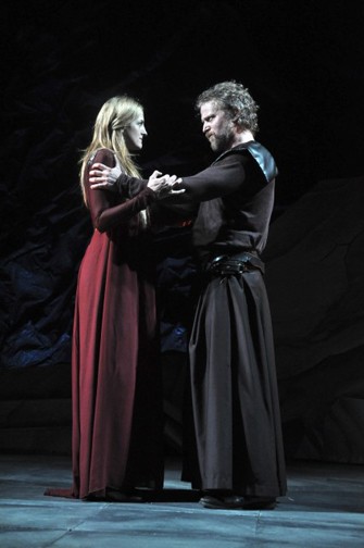 In the canon Lady Macbeth is one of the most compelling and challenging roles. Driven by ruthless and bloody ambition she will stop at nothing to fulfill the evil prophesy. She makes it happen when he equivocates. Clearly she has the stones in the family. A strong Lady Macbeth is nothing short of terrifying. With Naughton’s muddled and mediocre delivery the threat level hovered near zero.