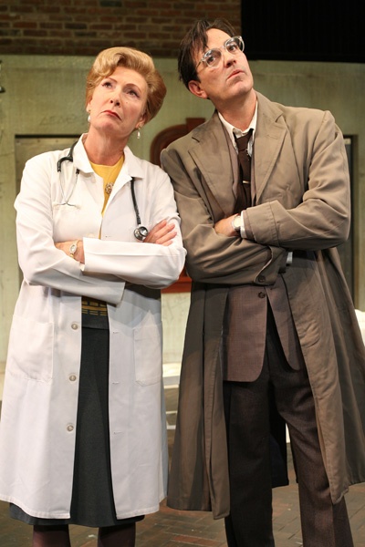 Directed by Kevin O'Rourke; sets, Alexander Dodge; costumes, Deborah A. Brothers; lights, Colin K. Bills: sound, David Sanderson; production stage manager, Jenny Dewar; production manager, Michael Wade; Casting Laura Schutzel, Tara Rubin Casting: Cast: (in order of appearance) Meggie Nidever (Police Officer/ Mrs. Rose), Kaveh Landsverk (Blocker/ Murillo), John Fletch (Police Inspector Richard Fox), Morgan Phillips-Spotts (Sister Boll), Roger Rees (Herbert George Butler/ Newton), Brenda Wehle (Doctor Mathilda van Zahnd), Mark Blum (Ernest Henry Ernesti/ Einstein), Cary Donaldson (Deacon Rose/ Louis Sievers, Chief Attendant), Rob Campbell (Jonathan William Mobius), Lydia Barnett-Mulligan (Monica Stettler).