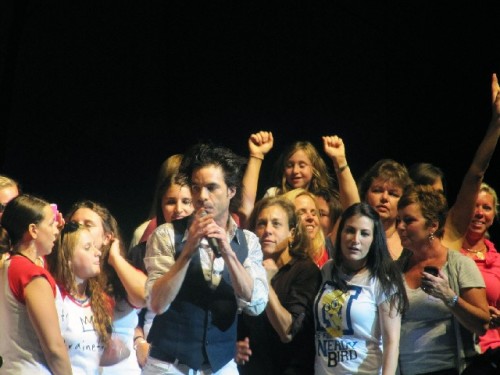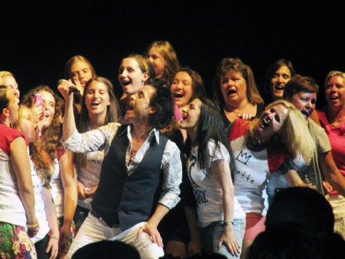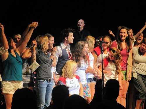 A bevy of babes from soccer moms to skinny Minnie teenieboppers hopped aboard at the invitation of lead singer, baby sitter and cheer leader Patrick Monahan. Encouraging the girls with “I don’t mind,” when have we heard that before, he invited them to join him on stage to sing, dance, titubate and cavort.