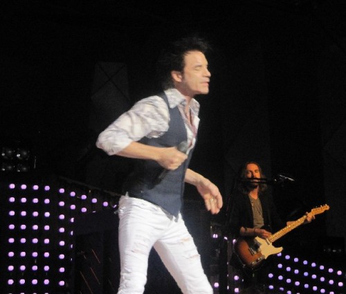 Wild eyed adolescents, mostly girls, were charging up and down the aisles flashing away with cameras and cell phones. Monahan joined in with his own camera and appeared to be texting and tweeting along with the fans.
