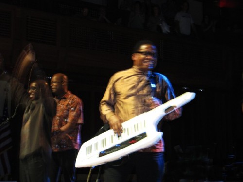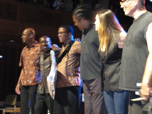 If that had been all the audience would surely have gone home pissed. But Herbie is such a consummate showman that he knew just when to draw in the audience. He came out front for a long intro to the current Imagine Project. Having so many albums under his belt he opted for something different. As a touring jazz artist he is truly a world citizen. He informed us that it had taken two years to record the just released album. It entailed sessions in seven languages and seven countries with musicians representing 11 nations. The Imagine Project embodies international superstars from all corners of the world. Artists include Dave Matthews, Anoushka Shankar (Ravi Shankar’s Other daughter), Jeff Beck, The Chieftains, John Legend, India Arie, Seal, Pink, Juanes, Derek Trucks, Susan Tedeschi, Chaka Khan, K'Naan, Wayne Shorter, James Morrison, and Lisa Hannigan.