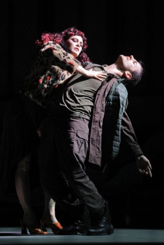 Tanya Orellana’s staging is unusual, with two concentric arcs of plain, light blue-green chairs dominating the set. The concept is that the stage mirrors the seating of the opera house. We are looking at ourselves, so the events on stage then represent the audience. Although the theme of art imitating life appeals, this particular instance is somewhat disturbing, as the characters in the opera dwell in the netherworld of society. This may be how Berg saw the world around him, and perhaps he would see our world today in the same way as the director seems to imply with this interpretation.