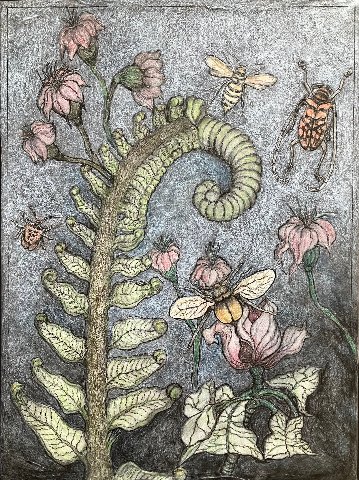 Susan Erony, Holly Fern, 2025, Acrylic, pencil, ink, paper, acrylic medium on canvas