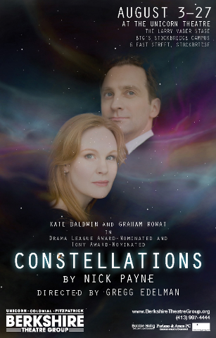 Constellations, by the brilliant British playwright Nick Payne, is a love story set against the backdrop of quantum physics. This may not sound appealing, he gives us a lot to ponder; about love, chance and choices.