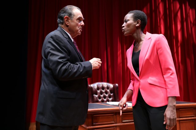 Scalia’s new clerk Cat, a black woman who made Harvard Law Review, is the feisty Tracy Ifeachor. Not surprisingly, Ifeachor started her career with The Royal Shakespeare Company. When the Justice asks why she applied for the job, she reports she did it on a bet when she was drunk. Whether or not this is true, the Justice is enjoying his adversary. The sparring has begun.