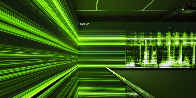 To produce The Great Animal Orchestra, Krause collaborated with United Visual Artists (UVA), a London-based art practice led by Matt Clark, whose installations and collaborations integrate new technologies and traditional media. UVA developed computer software that creates extraordinarily detailed, immersive, animated spectrograms generated by Krause’s soundscapes to form a visual interpretation of the various global locations and times of day that Krause’s original recordings were made. In this environment, we are guided into the interrelationship of the many species performing in the world’s great animal orchestras.