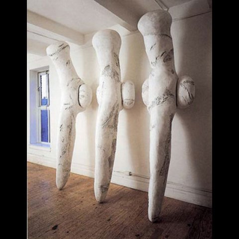 A seismic change occurred after Unger’s self-referential 1985 breakthrough. Other totemic works made of hydrocal followed, with many of the goddess and spinal forms evoking the work of Bourgeois.
