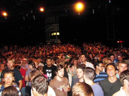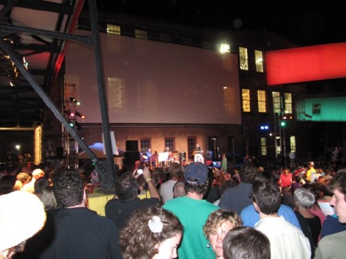 If the mellow mood and good vibrations that prevailed last evening are any indication all will go smoothly for these next two days. One of the most interesting benefits of the event is that in addition to music, comedy and groups like Bread and Puppet Theatre the audience will have access to the museum and its exhibitions. This is a brilliant carrot to lure a young audience into a contemporary art museum. Particularly with the endorsement of Wilco it is such a wicked cool thing for kids to do. Check it out.