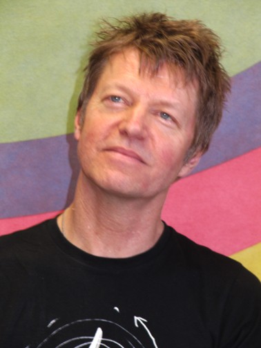 We headed into the Hunter Center for the set by The Books who went on at 10. Stomberg is a huge fan. All the seats were taken so we stood up front. We spotted former Whitney Museum Director, David Ross, in the stands.