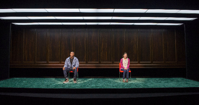 For most of what is revealed the director Lileana Blain-Cruz, focuses on the sharp and shifting dialogue. They mostly remain seated talking to each other. Then, with a harsh lighting shift, they face forward and speak to us or rather the review panel.