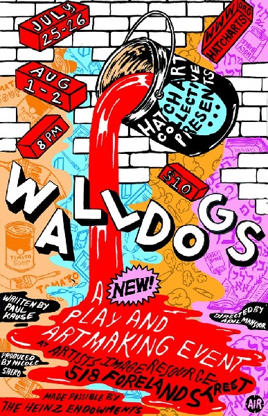 The play interweaves several stories across time and space. In one, an early twentieth century ad painter – a “walldog” – convinces a rural woman to allow him to paint a Campbell’s soup ad on the side of her barn (and finds himself drawn to her in the process); in another, a stressed-out event planner commissions a low-key, methodical urban artist to create a mural for a big fundraiser on a very compressed timeline; in a third, a teenaged stoner graffiti artist offers friendship and kindness to a dorky Jewish boy whose mother has recently died; and the fourth retells, in a kind of hallucinatory dream-state fashion, the biblical story of the mysterious writing on the wall that Daniel interpreted as foretelling the destruction of King Belshazzar and the Babylonian kingdom.