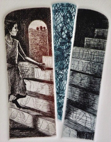 Some pieces, including Joanna Klain’s finely detailed prints, are beautifully refined images that evoke the figure to tell complex stories. The artist explores many narratives that invite interpretations by viewers. There is poetic whimsy to what is depicted.