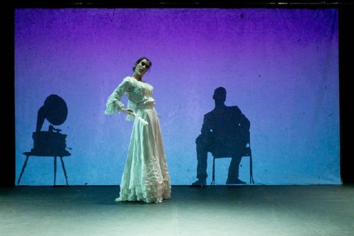 Aspects of 12 thread through the piece E/12 (el doce) as indicators of the 12 beats of flamenco, the twelve hours of a clock, or the twelve months of a year. This is conveyed in a number of segments including a video projection and dance indicating the notion of time and tide. There is also a young girl playing Hop Scotch with its arrangement of twelve squares.