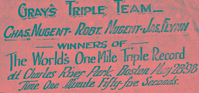 My father was a bicycle rider. Charlie and Rob Nugent were both bicycle riders. They had a tandem. I think that's three on a bicycle. They used to ride in races. On the Charles River there was a race course. They went up to Boston and raced on holidays and weekends. I believe they set a world record. Uncle Rob was an athlete. He was a basketball player on the Gloucester team. That was a big thing and everyone went to the games.
