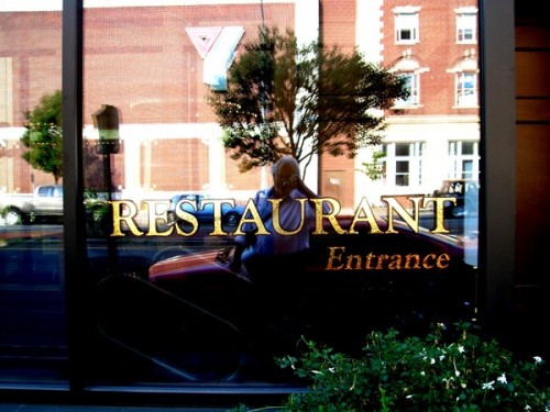 The restaurant opened in June and we were eager to try the menu and ambiance with friends since we first discovered it on North Main Street during a tour of Open Studios. What drew us was its formindable scale commanding an entire street block and the sophisticated look of large framed windows and the inviting planters out front along a well worn commercial street with its many vintage store fronts.