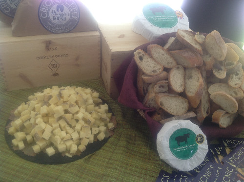He was backed up and needed help to move the consumers along. He asked for my help, which I gladly consented to. I grabbed a cheese knife and began my task of explaining what cheese was being offered as a sample, its background historically and from what animal it came from.