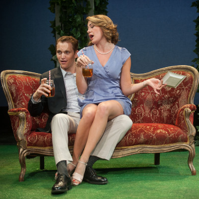 We suspect that’s what is in store for the utterly ditzy Allison. She is headed down the slippery slope, laughing all the way, in what is destined to be a failed marriage. She never walks but rather flits and twits about the stage in spastic, jumpy, comic minces. As for acting Loprest does this well but it soon gets tedious.