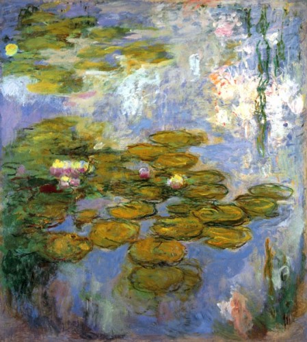 There were times when we laughed. When, for example, he describes not noticing an oncoming wave that engulfed him, swept away his canvas and materials, almost drowned him and left him with an array of colors painted onto his face and daubed into his beard. It was a richly bravura moment. And there were times when we were moved to empathy and sorrow as he reported on the deaths of Camille, later his second wife, Alice, then a son. Or his response to a four line telegram when Alice informed him that she was ending their relationship (she was married to a wealthy man who went bankrupt and disappeared). Or later, while a wealthy and successful artist living in the paradise of his country home in Giverny, he wrote of being legally blind and facing operations with uncertain results. And, despite fame and fortune, revealing expressions of doubt about his work. At the time he was working on the great panoramas of "Water Lilies" inspired by the pond in his garden.