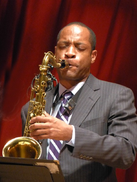 Marsalis opened the set with the complex, multi faceted “Magic Hour.” It presented many different moods and textures. At times he evoked strained, overblown, squeaky textures in a register and manner that recalled the style of Duke Ellington’s upper register specialist Cat Anderson. There were fast, trilling passages echoing the virtuoso vehicle “Flight of the Bumble Bee” by Nikolai Rimsky-Korsakov. It is not surprising to find classical quotes as Marsalis has won Grammys for both his jazz and classical recordings.