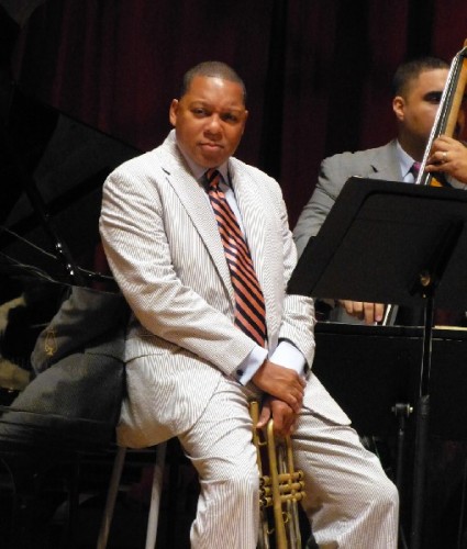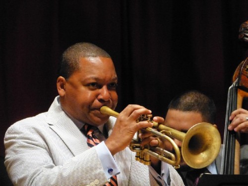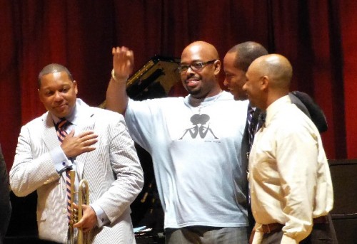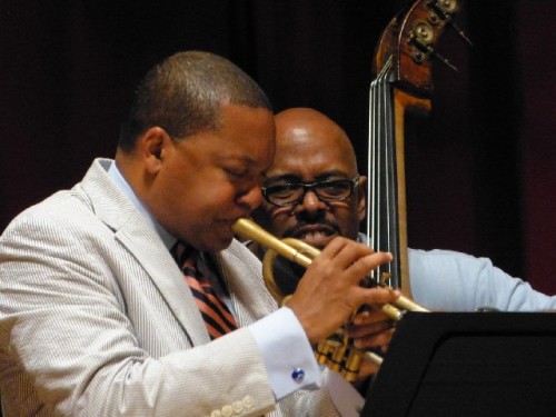 Introducing the vintage song he said “We need to bring everyone along with us from the bitty bitty children to the old folks.” With Blanding on clarinet they gave a clinic on the style and feeling of early jazz. Blanding’s clarinet licks recalled Johnny Dodds or George Lewis. Marsalis demonstrated both bell mute and plunger mute techniques. From the historic they evolved into a more contemporary take opening up on the blues standard.
