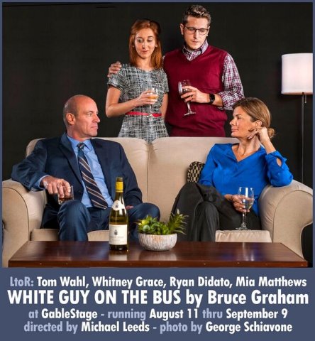 The southeastern premiere of Bruce Graham’s White Guy on the Bus, at GableStage, continues through Sept. 9 at the company’s venue, 1200 Anastasia Ave., in the east section of the Biltmore Hotel in Coral Gables (a Miami suburb). Performance times are at 8 p.m. Thursday-Saturday as well as 2 and 7 p.m. Sunday. For tickets, visit www.gablestage.org or call (305) 445-1119.