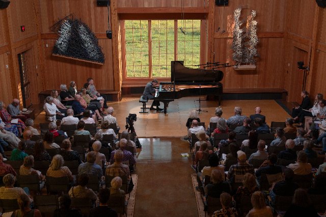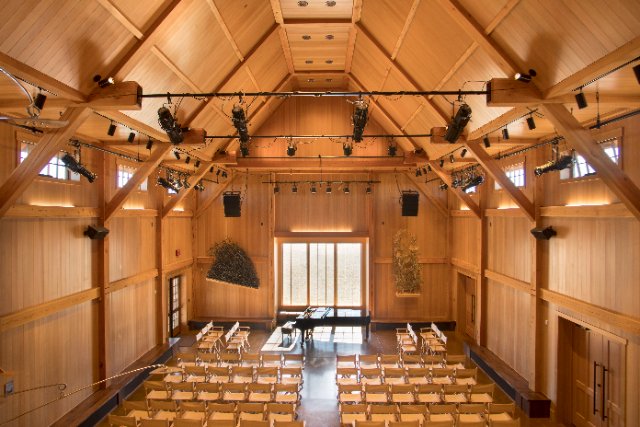 Hough's own composition Partita, a suite of delightful dances, filled the beautiful Olivier Music Barn concert room modeled on Haydn’s Esterházy Palace performing space. The concert hall is designed with an eye to Benjamin Britten's Snape Maltings roof, the shoebox surround-sound of Wigmore Hall, and the intimate acoustics of the Glyndebourne Opers House, which is surrounded by sheep-filled meadows. The Olivier Music Barn is one of the great performance spaces in America.