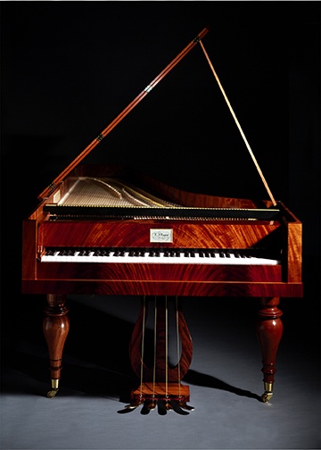 In fact, Thursday evening, the didactic component and the music were one. Mr. Ax sat down before the same magnificent R. J. Regier fortepiano that was played so beautifully by Aaron Berkowitz earlier in the summer, when he accompanied baritone Richard Giarusso in Schubert's "Schwanengesang." He announced that Yo-Yo Ma's cello had also been reconfigured like an instrument of Beethoven's time. It was fitted with non-metallic strings and a special bridge, and the supporting pin was removed. Rodney Regier is widely regarded as one of the leading builders of harpsichords and fortepianos. The instrument which has now visited the Berkshires twice is modelled on Viennese fortepianos of the late 1820's, in particular on examples by Conrad Graf and Ignaz Bösendorfer. At this time iron frames began to appear, and this permitted a greater range and volume. This 80-key fortepiano has a rich, full tone throughout its range, recalling more a modern piano than the fortepianos of Mozart's day. At "Schwanengesang," which was held in an intimate, semi-private venue, the audience were able to flock around the fortepiano and examine it, while Mr. Berkowitz and Mr. Regier demonstrated its action and pedals.