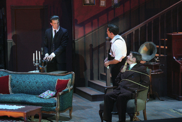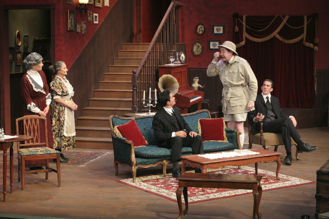 Fine creative resources are brought to bear. Andrea Bechert's thoughtful stage design enhances the production. The three acts require only one set, but it reflects the period well with fine layout and detail. The several egresses, which are important to look and function, operate well. Teddy repeatedly charges up the stairs brandishing a long wooden spoon as if leading the assault on San Juan Hill in the Spanish-American War. At one point, the open door to the basement cleverly reveals a moving silhouette on the wall of a man shoveling dirt for a grave.