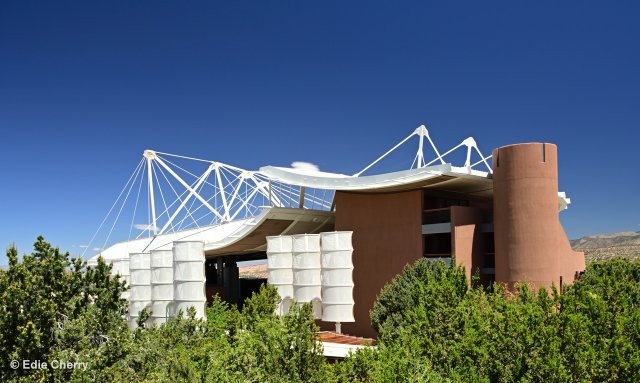 - Santa Fe Opera House – 2,000 seats, similar in size to most great European opera houses with unique design, open to nature on the sides, open backwall to stage, huge acoustic arc as ceiling, wind baffles on windward side, outdoor terraces for intermissions – It can be toured without attending opera.