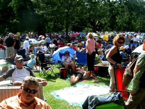 Conditions could not have been better for the Sunday event that recalled the bucolic mood of Manet's "Le petit déjeuner sur l'herbe" multiplied by the thousands as far as the eye could see. Folks were enjoying their picnic lunches, kicking back and imbibing the sweet sounds of John Williams and the Pops, for the first set, and then backing James Taylor in a series of lush arrangements. For the thousands of fans in the last of three, sold out concerts in the Shed it just doesn't get better.