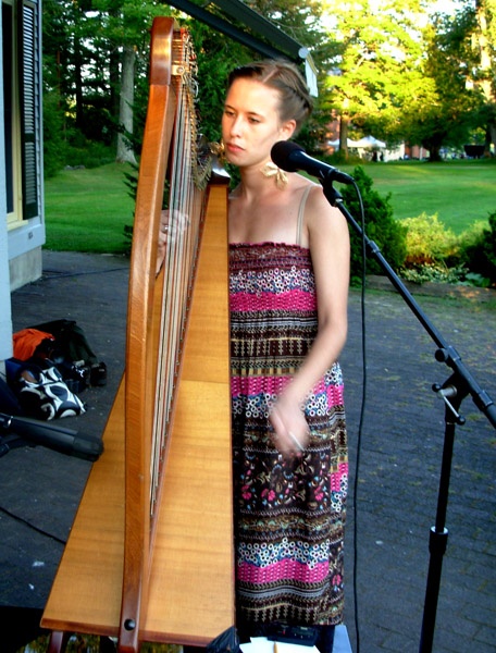 The mood will be more sedate this afternoon at 3 when British born jazz pianist, Marian McPartland, tapes yet another segment of her National Public Radio broadcast "Piano Jazz" which started in 1978. Her featured guest artist is the young sensation Renee Rosnes. One of the features of this Festival is a mix of established and emerging artists with a Jazz Café set up in a tent to present newer, younger artists in free concerts for those with passes to the Ozawa Hall events. We caught an interesting set by harp player and vocalist Maeve Gilchrist who provided Celtic skat for a media only event. The rising star is a native of Scotland who recently graduated from Berklee College of Music. The programming is so dense, starting today at 1 pm in the Café with the French vocalist Mina Agossi who serves up a rich gumbo of different flavors from Fast Waller's "Aint Misbehavin" to "Voodoo Chile" by Jimi Hendrix, that the heck with a blanket, we may just pitch a tent and sleep in the woods or party round the clock. Just like Woodstock, man. Get down baby.